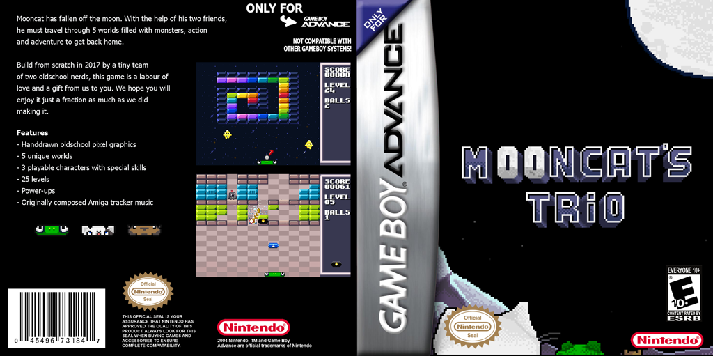 Mooncat's Trio is my attempt at making a game for the Gameboy Advance. Graphics and programming is done by me,